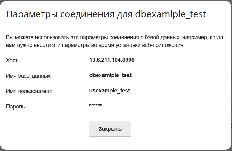 Параметры соединения с базой данных
