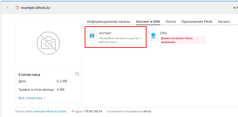 2. Откройте вкладку Хостинг и DNS и выберите пункт Хостинг.