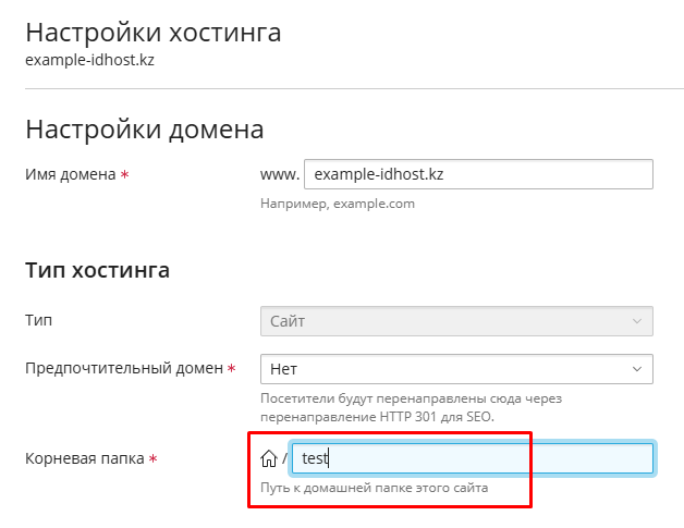 3. В поле Корневая папка укажите требуемый путь.